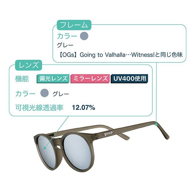 新品未使用 箱付 袋付 グダー goodr サングラス OG-GY-CH1 1/の8【OG】GOING TO VALHALLA… WITNESS! グレー