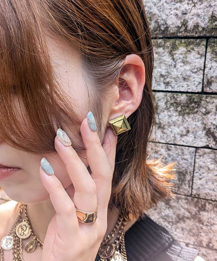 燻加工が施された重厚感が魅力的なメタルスタッズピアス