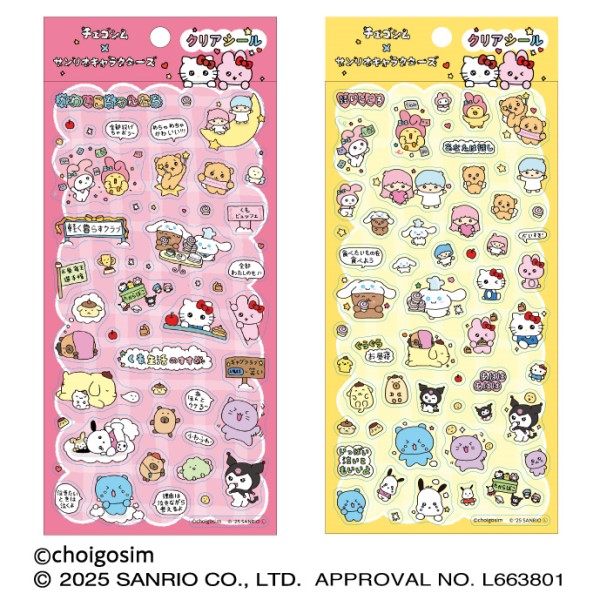 「チェゴシム」と「サンリオキャラクターズ」のコラボイラストを使用した『クリアシール』が2種類登場です。