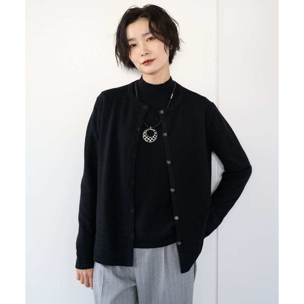 M18472 未使用 ウォッシャブルウール立ち衿Vネックカーディガン 黒 42