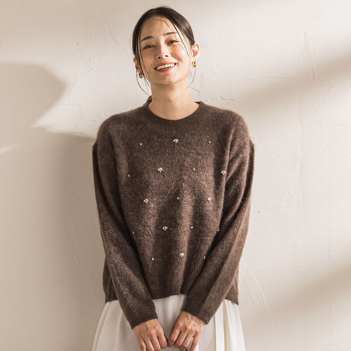 きらめくビジューが冬の着こなしに華やかさを添え、