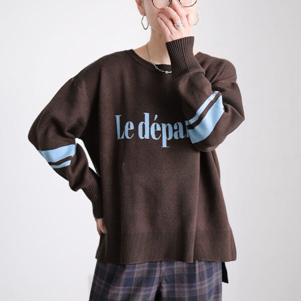 一枚で洒落顔になれる、ロゴ&ライン配色ジャガードニットの登場です☆抜け感のあるルーズシルエットでぽっちゃり体型をしっかりカバー◎身幅はもちろん、腕ぐり・肩周りにもゆとりを持たせた設計で窮屈感のないラフな着心地です。後ろが長めに設定された前後差のあるステップヘムでヒップラインをカバーしながらこなれ感をプラス♪目を惹く配色ロゴ・ラインも相まって視線が上に集まり脚長効果も期待できます!