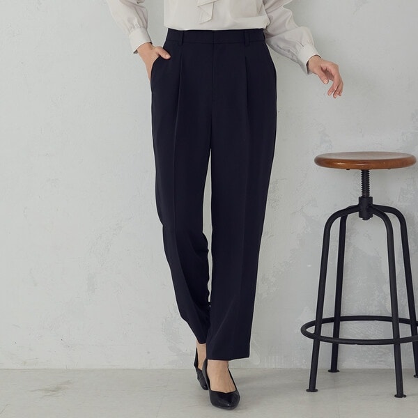 通勤スタイルにも活躍する、きれいめテーパードパンツ。
