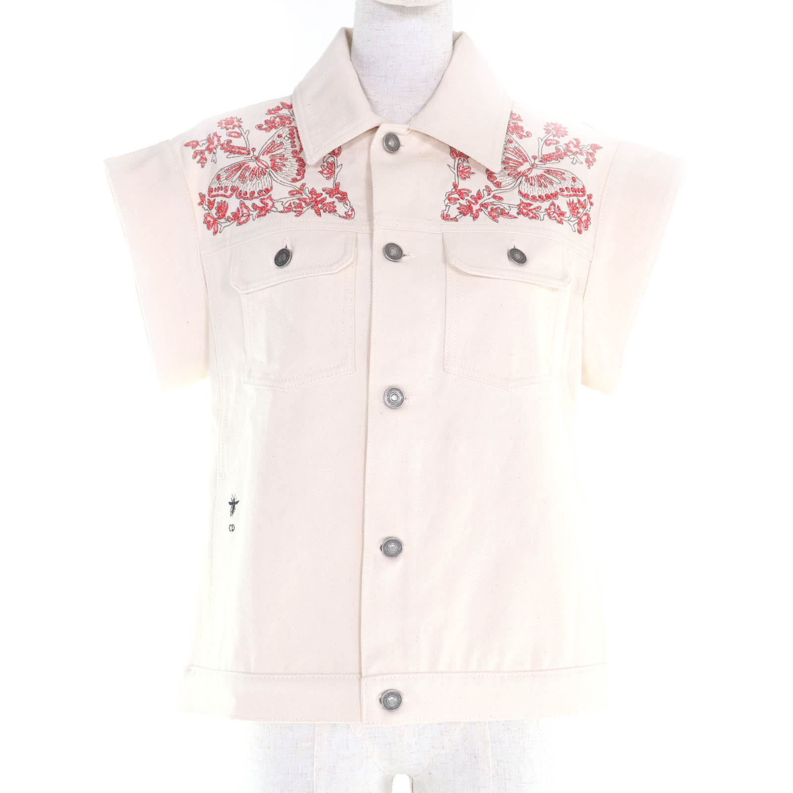未使用品★Christian Dior クリスチャンディオール 247P41A3339 DIOR VIBE ロゴボタン付 デニム カーゴパンツ ホワイト 40 イタリア製 正規品 レディース【中古】