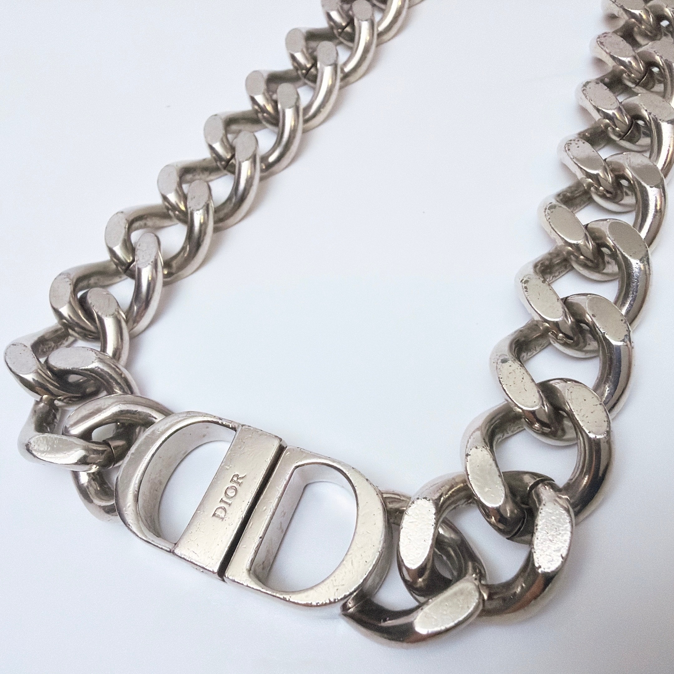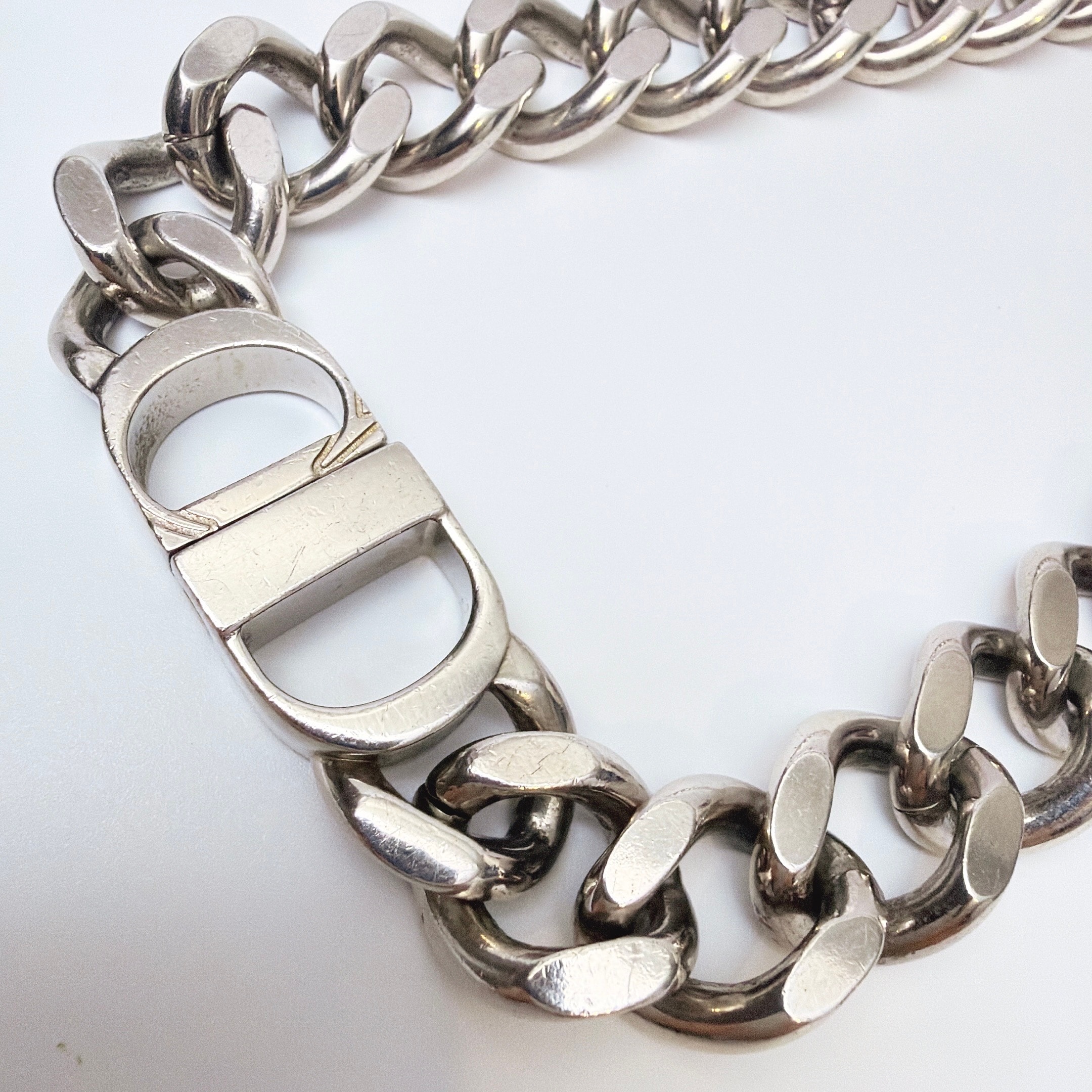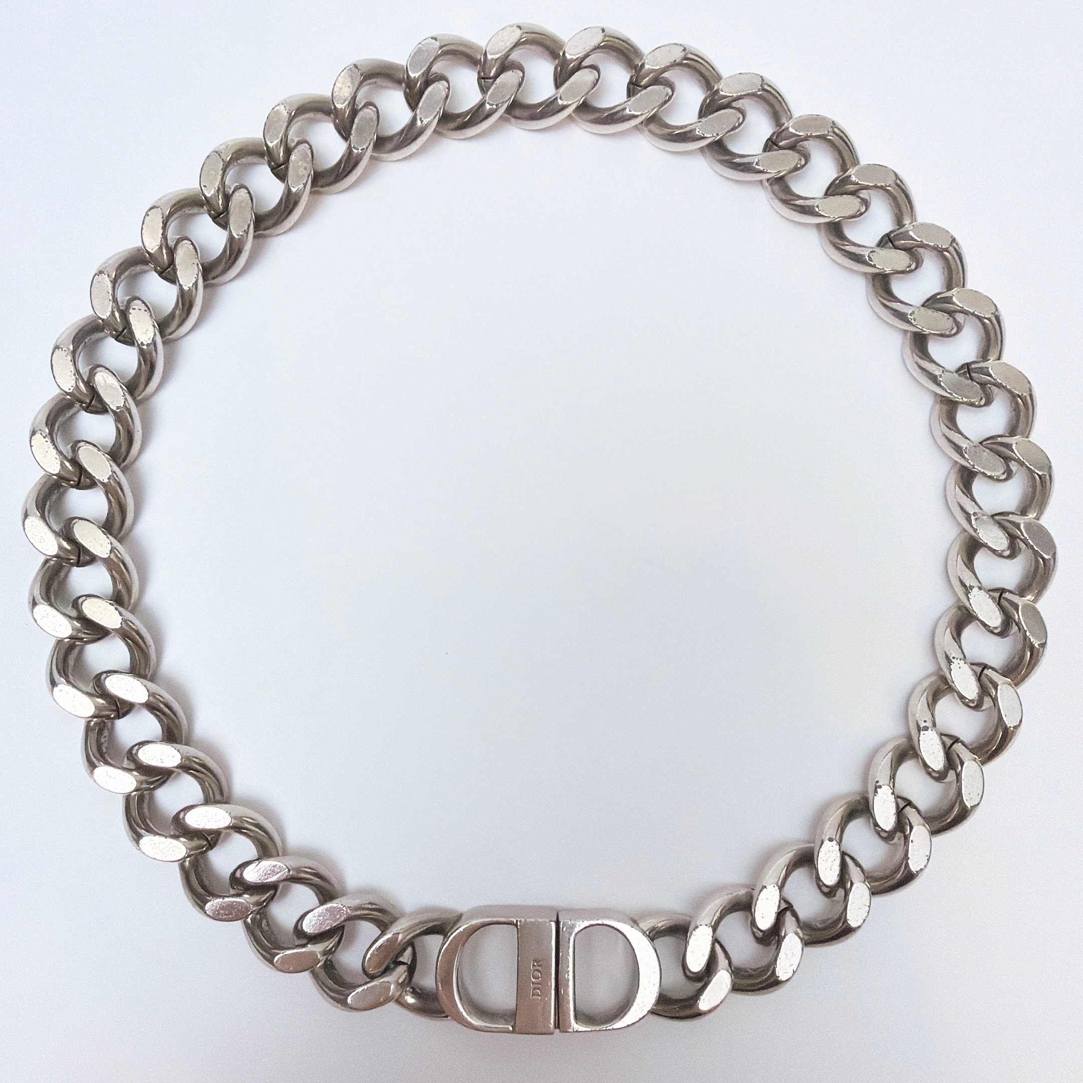 存在感のあるシルバーチェーンに、アイコニックなCDロゴがデザインされています。
