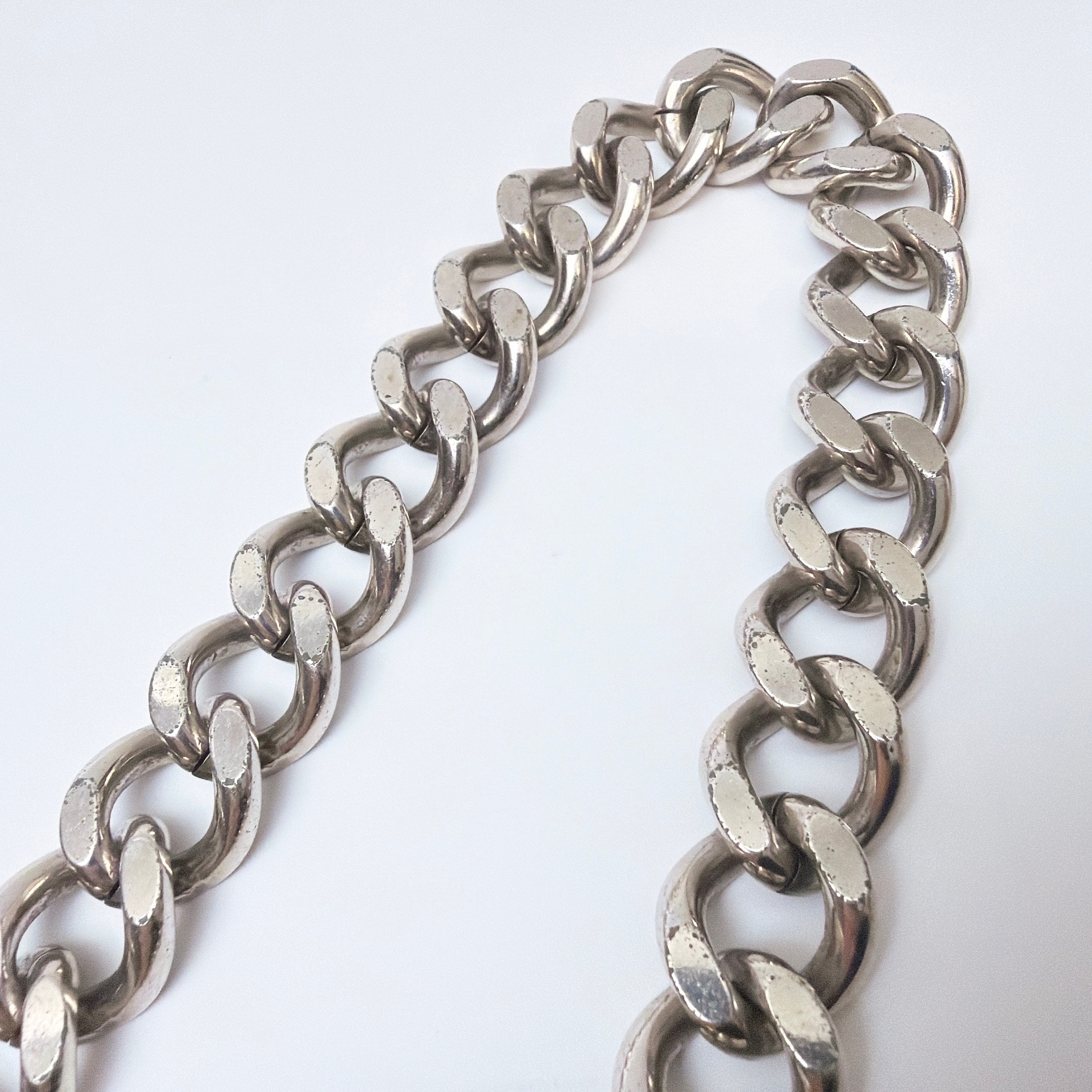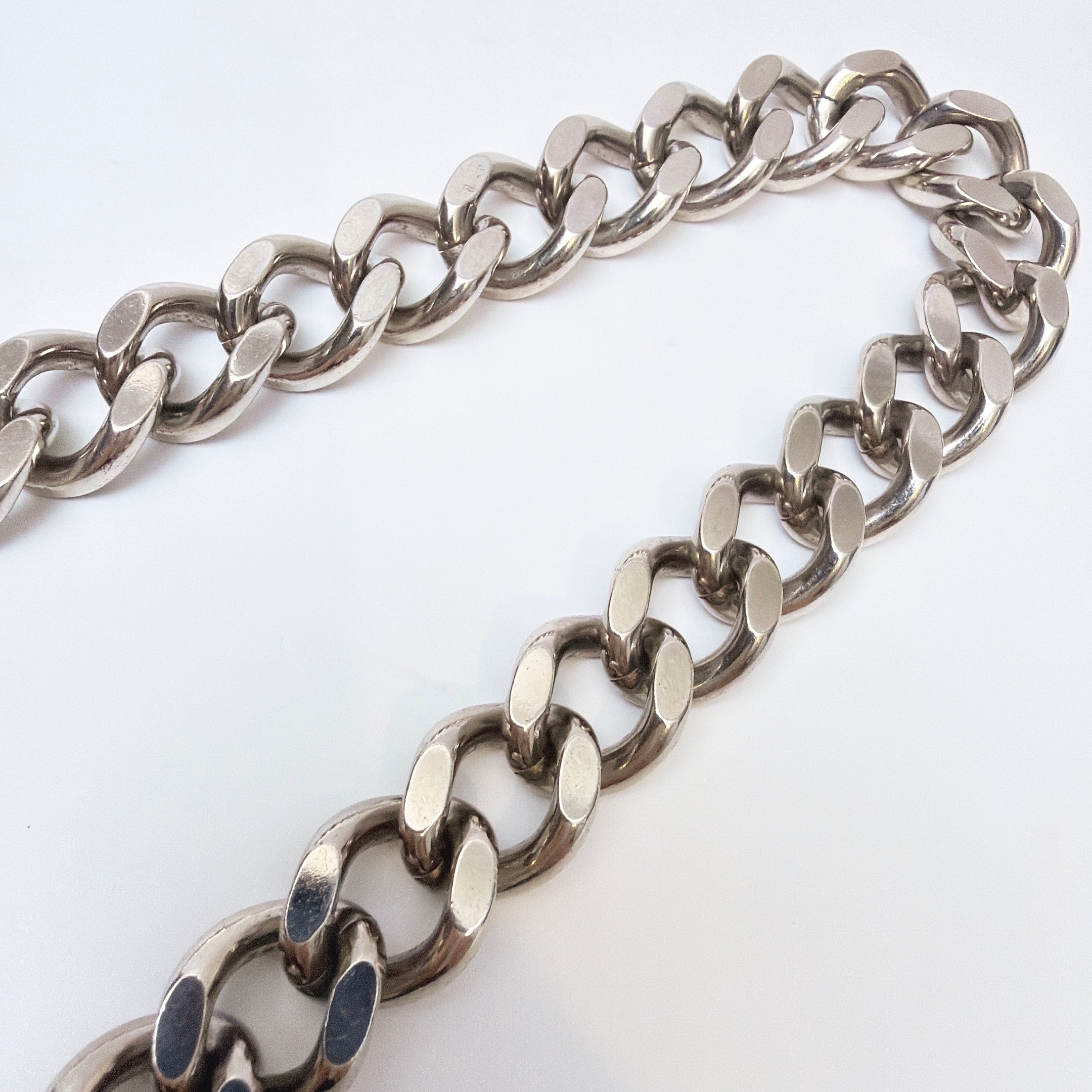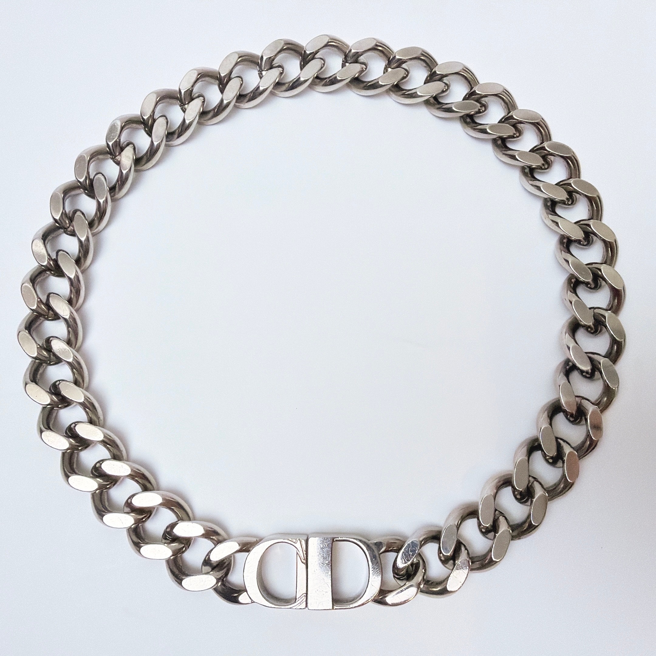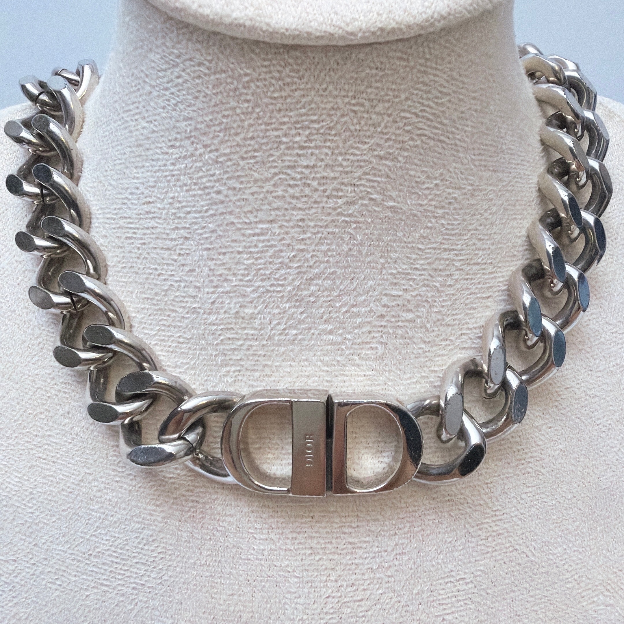 存在感のあるシルバーチェーンに、アイコニックなCDロゴがデザインされています。