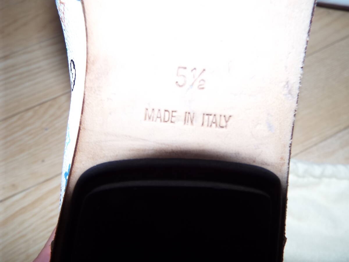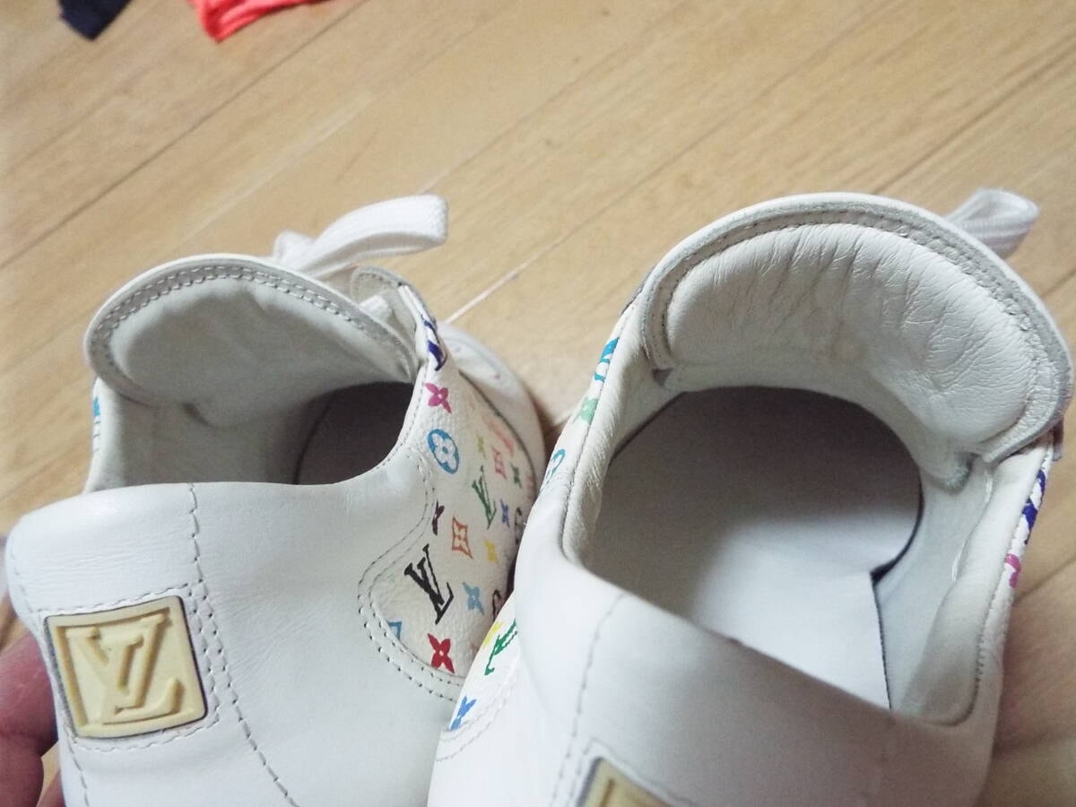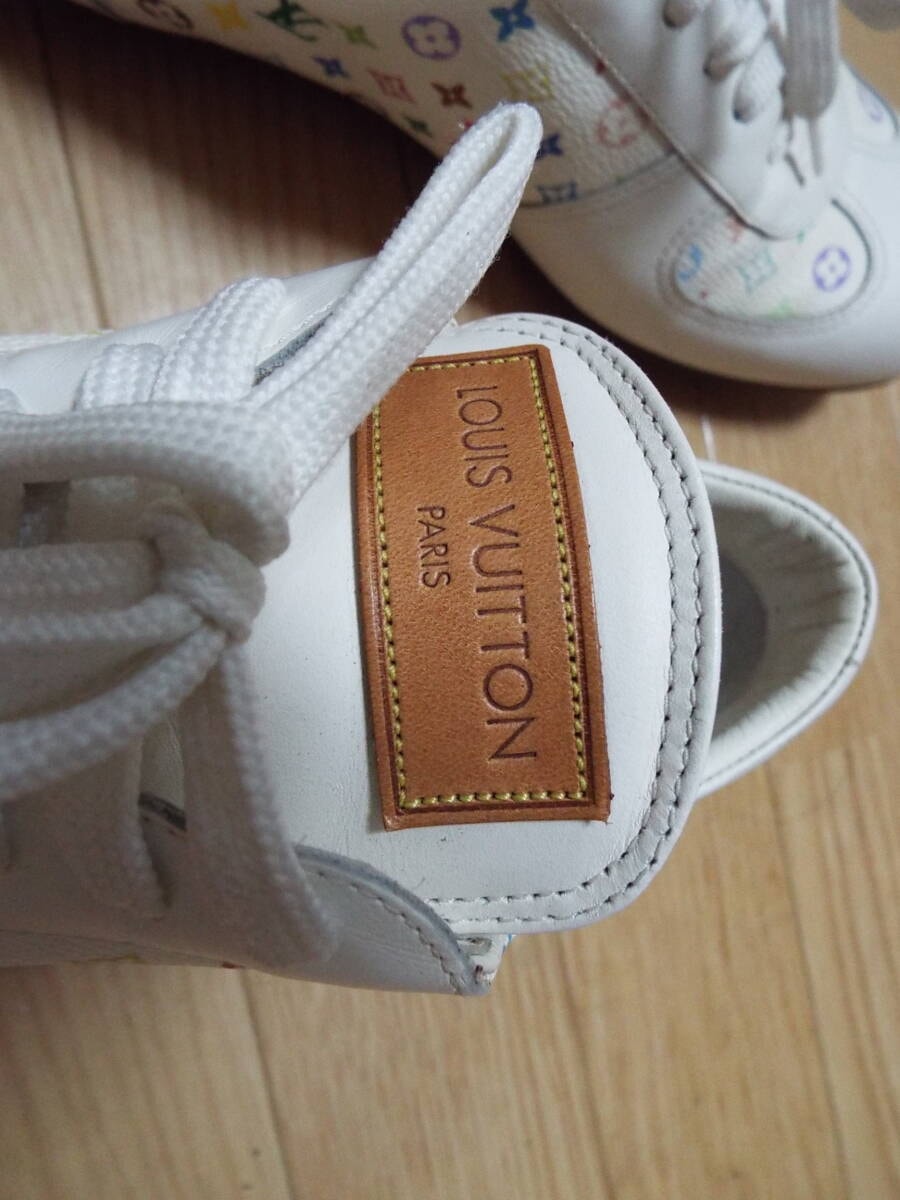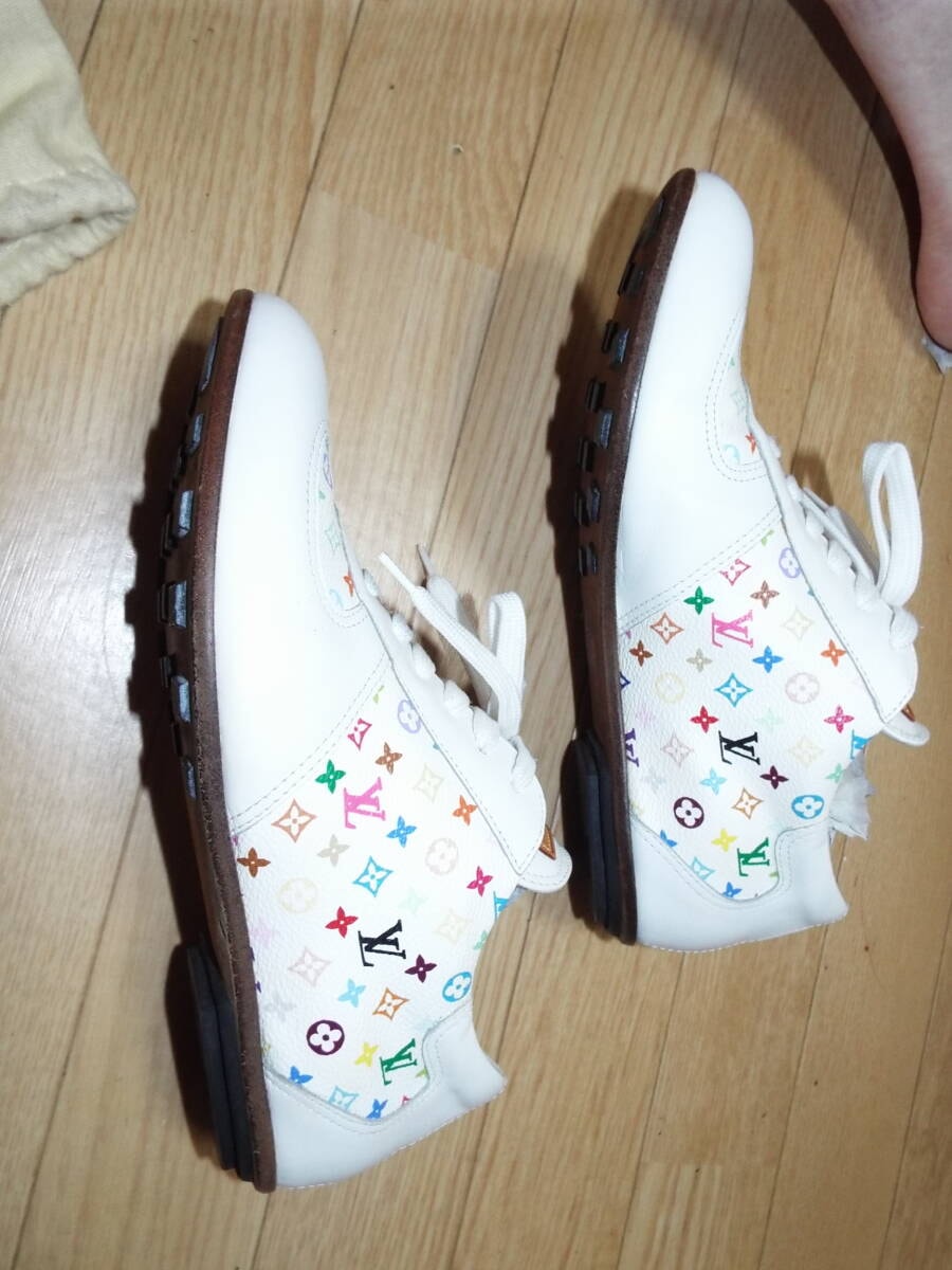 紐は部屋に置きっぱなしの保管の為、薄っすらホコリ被りがあります。オブジェ感覚で飾っていて履く機会もなく年齢的にも似合わない年代の為に出品しました。どなたか興味あればご検討ください。ヴィトン純正の布袋もあります。