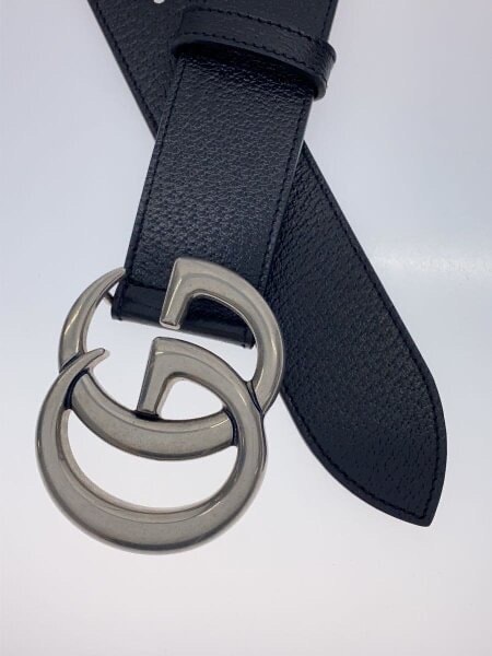 訳あり GUCCI グッチ Ladys ブラックレザー ベルト ダブルGロゴ