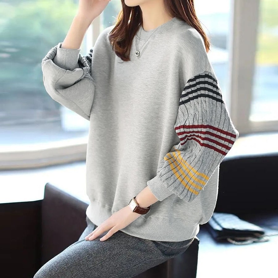 配色 異素材 切替 トレーナー レディース オーバーサイズ ギャザー袖 ドッキングトップス 長袖 クルーネック プルオーバー スウェット バルーンスリーブ 切り替え ライン入り ドロップショルダー シ 1B9x324