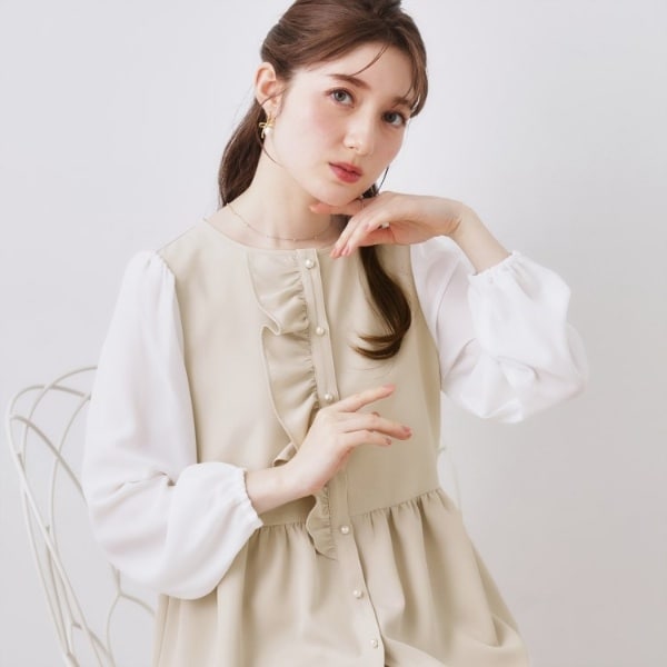 SLY/スライ◇異素材切替フリル七分袖トップスプルオーバー『F』ボリューム袖
