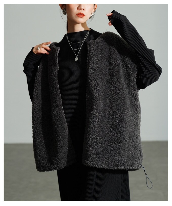 フリースベスト ダークブラウン