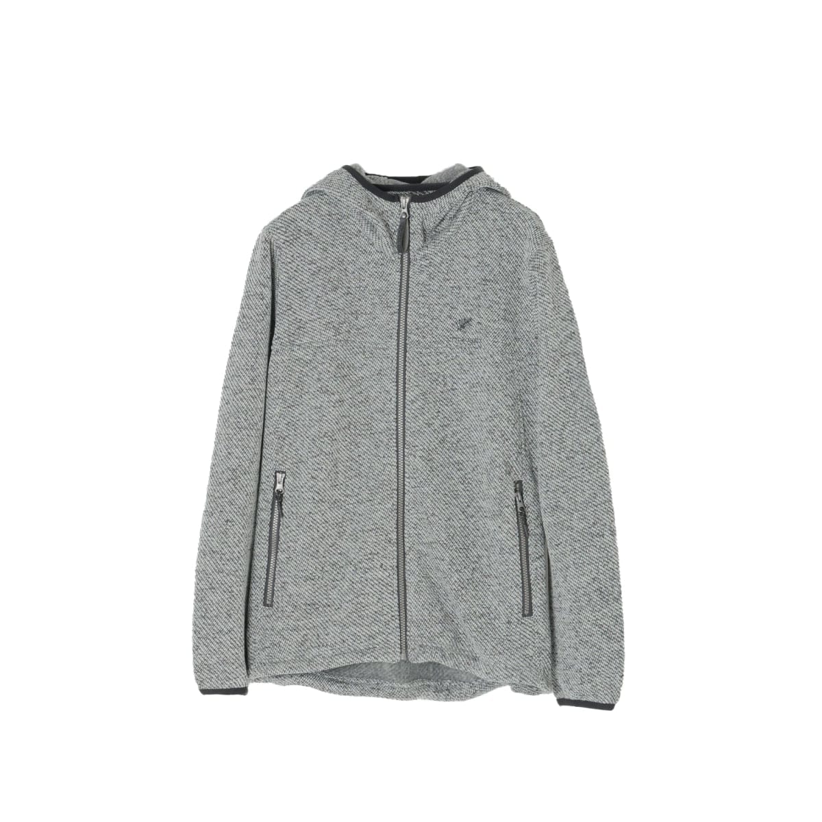 セーターフリース素材の上品な表情が特徴の、ジップアップフードブルゾンです。
