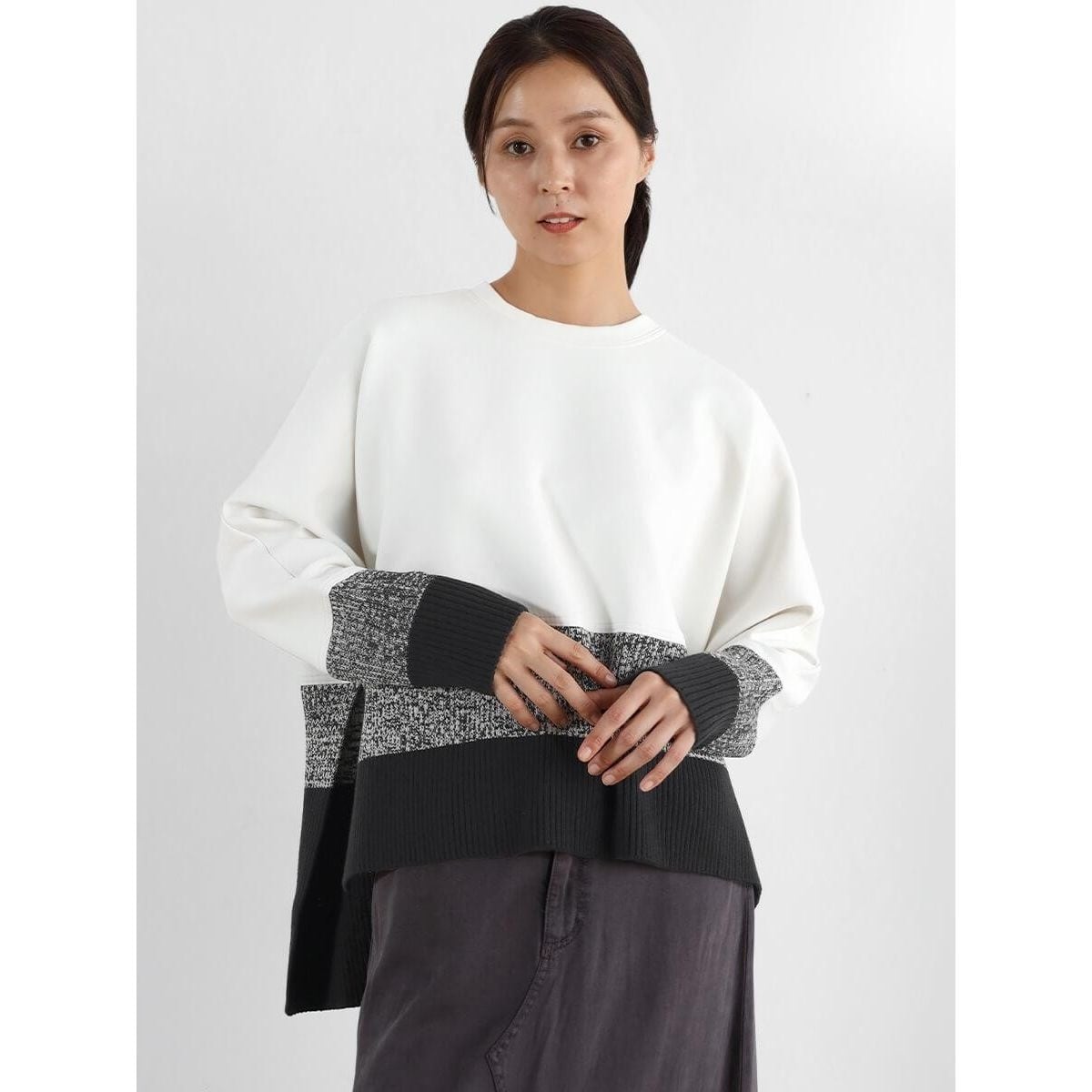 ■ボンディングにニットが掛け合わさったハイブリッドな1枚着