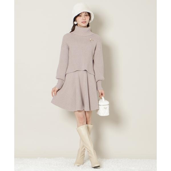 程よい抜け感を演出してくれる、大人フェミニンなニットセットアップ【Design】・オフタートルニットとニットフレアスカートがセットになったセットアップアイテム。・リラクシーな雰囲気のあるシルエットで、ホリデーシーズンに着回ししたいセットアップコーデ。・ボディラインを拾いすぎないワイド感とフレアシルエットが魅力のアイテムです♪・ボリューム感のあるオフタートルが暖かく、ボリューム感を演出することで顔周りをスッキリと見せてくれます。・こなれ感のあるワントーンコーデをお楽しみいただけます◎・スカートのウエスト部分は総ゴム仕様。・パールブローチ付き。【Fabric】・伸縮性のある編地のニット。・ボリューム感と落ち感を好バランスで取り入れたシルエットです。・ご自宅でお手入れが出来るのも嬉しいポイント♪・ホワイト、ピンク、グレー、ブラックの4色展開となります。【Care】手洗い可能