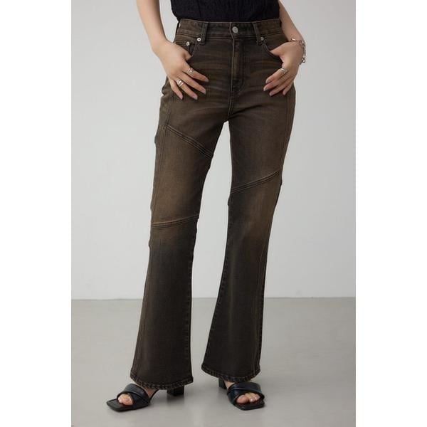 ■AZUL DENIM スウィッチングフレアデニム■ポイント切り替えデザインがポイントのフレアデニムです。■ディテールオーバーダイ加工でヴィンテージ感漂う一本になっています。程よいストレッチ感で、細すぎないシルエットに仕上げたフレアデニムです。足まわりの切り替えデザインが足を立体的に見せてくれ、すっきりとスタイルアップ効果を演出します。■スタイリングレース素材やデザインニットとの合わせが今季トレンドのヴィンテージムードに合いおすすめです。■生地13.2oz 微ストレッチデニムを使用。 透け感:なし裏 地:なし伸縮性:ややあり光沢感:なし[注意事項]※画像の商品はサンプルです。実際の商品と仕様、加工が若干異なる場合があります。※画像の商品は光の照射や角度、お使いのモニター環境により、実物と色味が異なる場合がございます。※着用、お取り扱いの際は、アテンションタグをご確認ください。