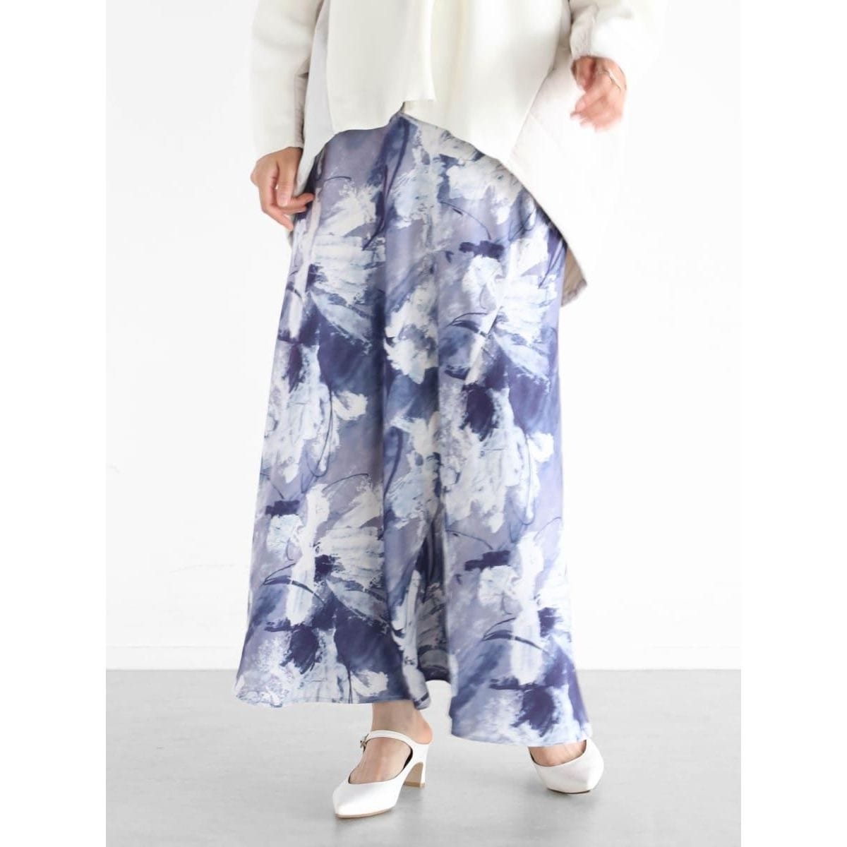 大胆なフラワープリントが目を惹くフレアスカート。
