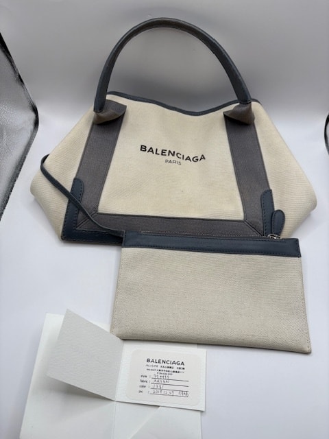 バレンシアガ Balenciaga ネイビーカバス グレー×ベージュ 339933
