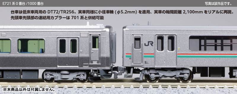 Nゲージ 【セット内容一覧】 クハE720-7 クモハE721-7(M) クハE720-1011 モハE721-1011 サハE721-1011 クモハE721-1011(M) 連結器カバー×4 交換用前面表示:「新白河」「(無地)」×各4両分 消灯スイッチ用ドライバー 連結用スカート・カプラー・電連(2段)×各2両分 スカート・ダミーカプラー×各2両分 行先表示シール