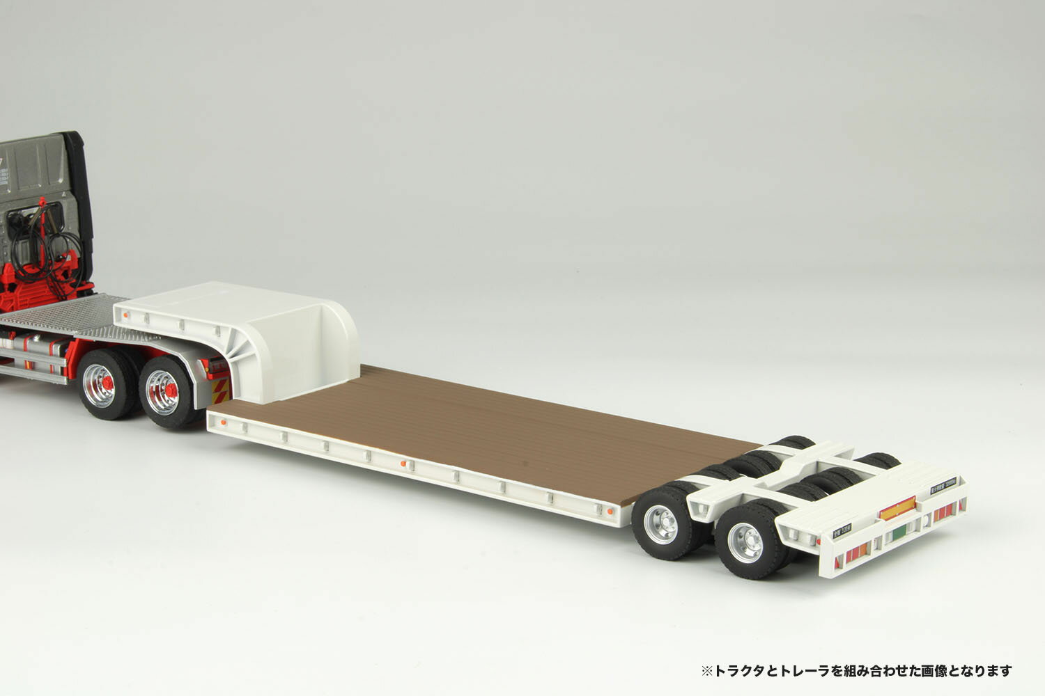 モデルは16輪の中低床トレーラを1/50で再現したダイキャスト完成モデル。その特徴ある連結部分のグースネックのフレーム形状はモデルでも目を引くポイント。形の面白さとガッチリと支えてトレーラーヘッドと連結する力強さも感じられます。その形だけでなくフレーム部分などの細かなディテールもしっかりとモデル化しているところが見逃せません。荷台サイドに装備された荷物固定用フックも再現。実車同様に大型の建機など、同じ1/50スケールのモデルを搭載して固定することもできます。また、タイヤ部分はタンデムアクスル専用のトラニオン式サスペンションのメカニズムを表現し、実車同様に可動が楽しめます。モデルにはスロープパーツもセット。日野プロフィアをはじめ、各メーカーのトラクターと組み合わせて、また、荷台には同スケールの建機などを搭載してお楽しみいただけます。●16輪の低床トレーラを1/50で再現したダイキャスト完成モデル●フレームのカラーは基本カラーのホワイト●特徴ある連結部分のグースネックのフレーム形状はモデルでも目を引くポイント●荷台サイドに装備された荷物固定用フックも再現●実車同様に大型の建機など、同じ1/50スケールのモデルを搭載して固定することも可能●タイヤ部分はタンデムアクスル専用のトラニオン式サスペンションのメカニズムを表現し、実車同様に可動が楽しめる●モデルにはスロープパーツもセット・ホビー系商品についての諸注意メーカー都合により発売の大幅な延期が発生する可能性がございます。予約商品についてはメーカーから順次入荷次第の発送となります。メーカー公表の発売日とは異なる場合がございますのでご了承ください。【対象年齢】:【商品サイズ (cm)】(幅):25.5