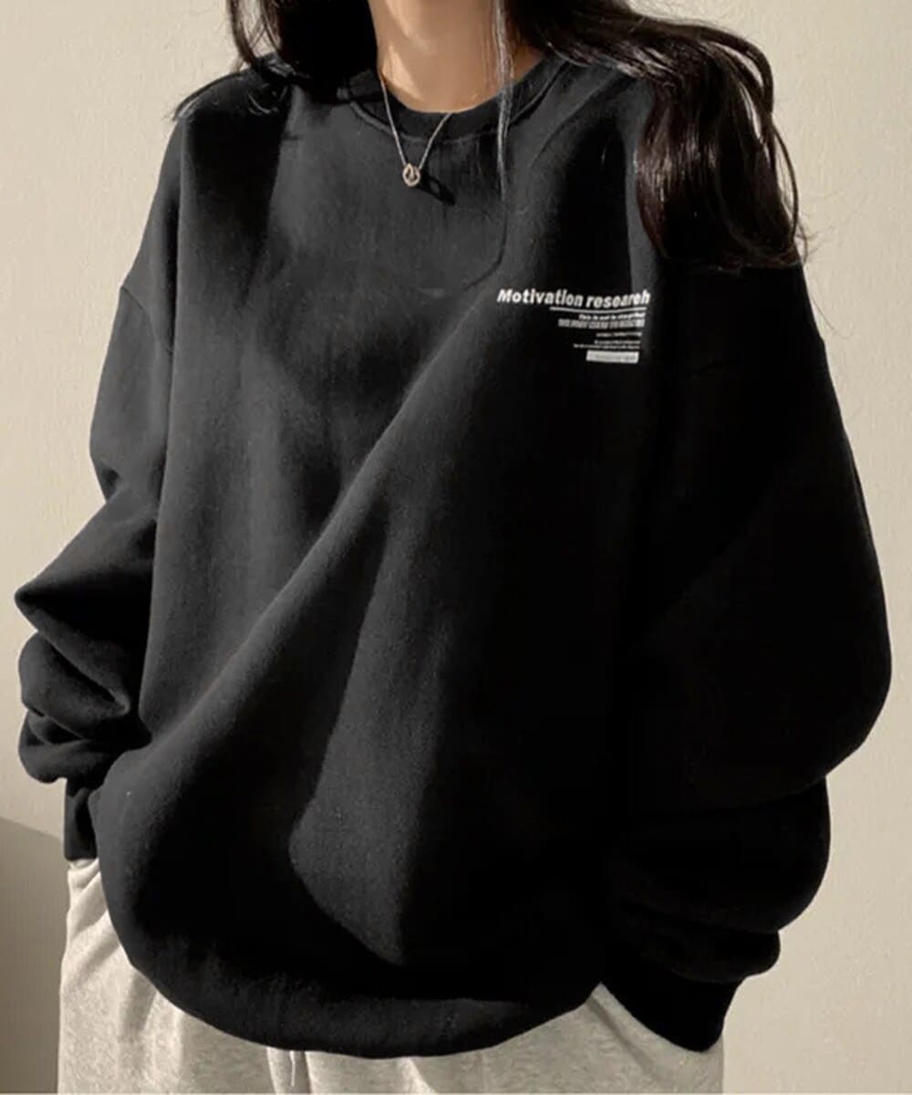 フロントとバックに英字ロゴをあしらった、クールな存在感のスウェット。
