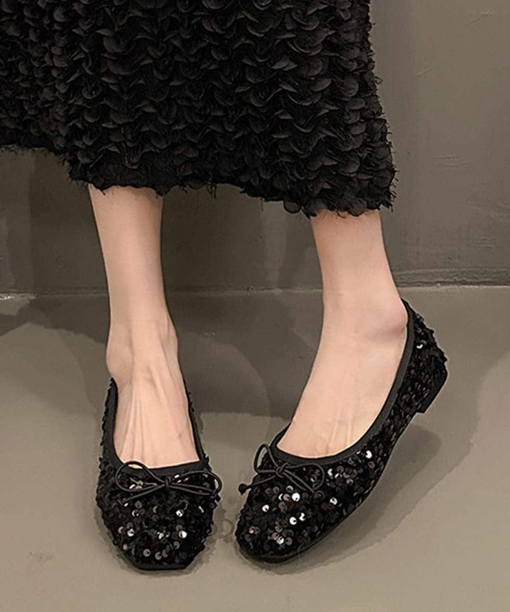 スパンコールが華やかさと遊び心を添えるバレエシューズ。
