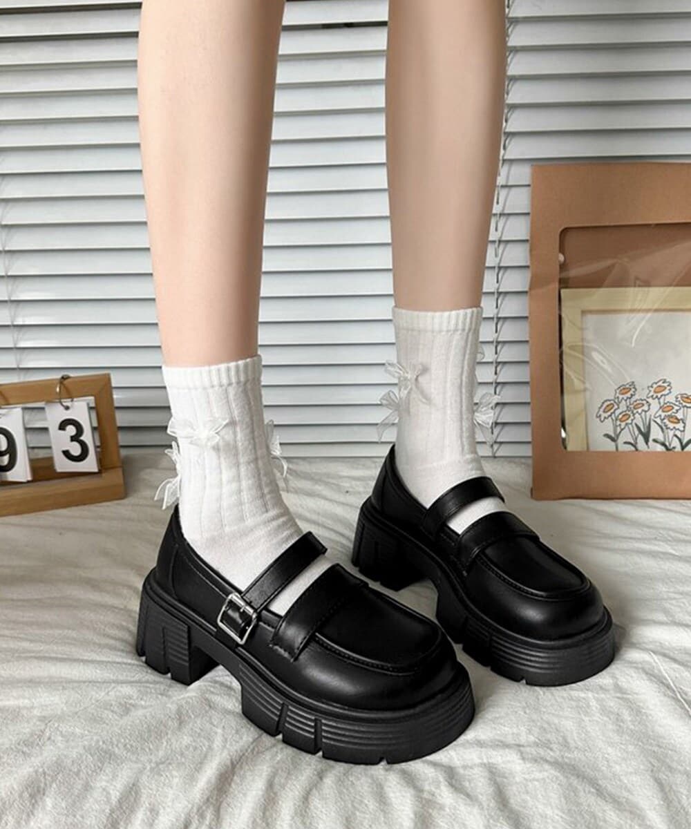 ベルトデザインがポイントの厚底ローファー。