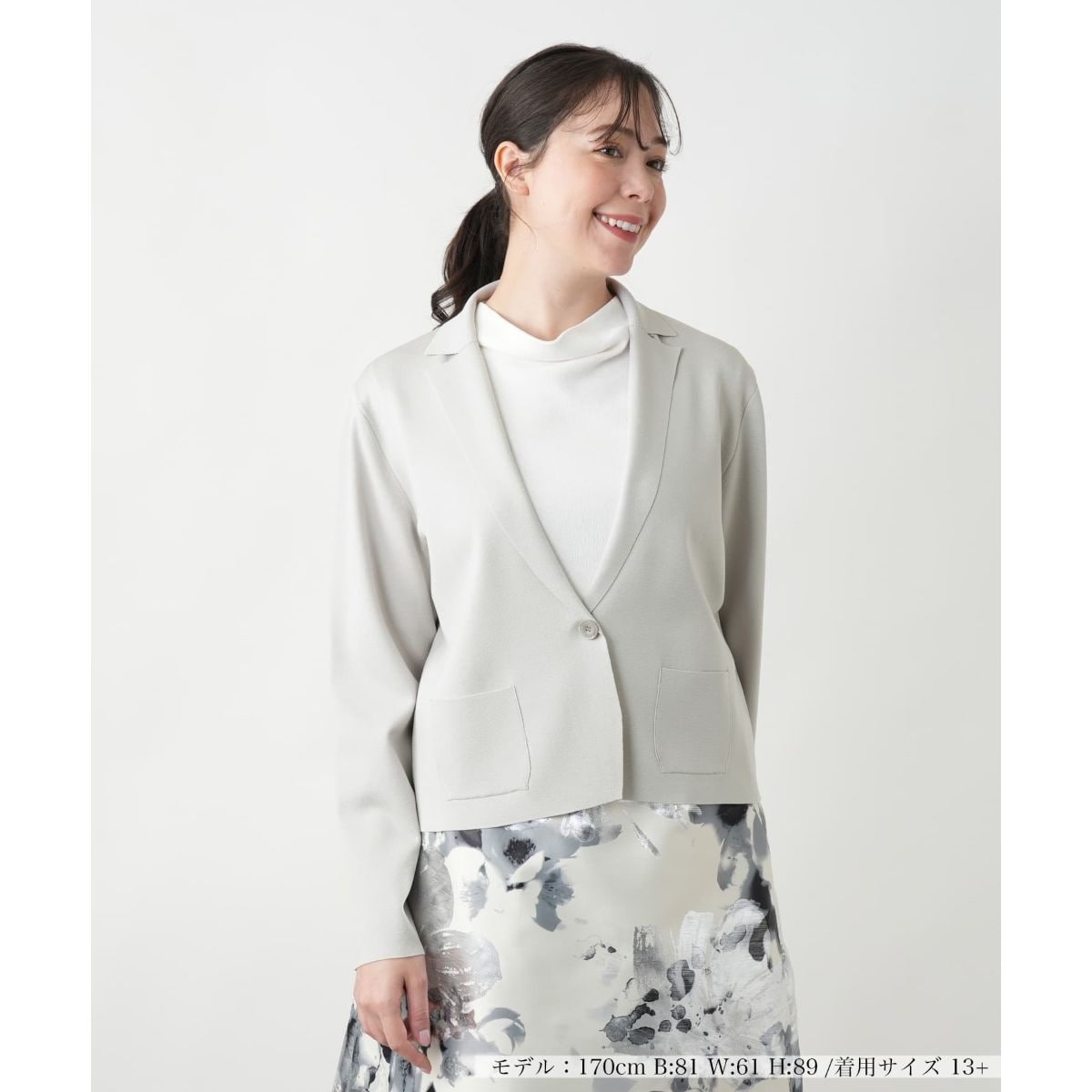 緩やかなカーブを描くラペルが、優しく上品なニュアンスを添えるニットジャケット。程よいきちんと感がありながらも、ニット素材ならではの軽やかさと快適さが感じられる一枚です。すっきりとしたコンパクトなシルエットで、身体のラインに程よく沿いながらスマートな印象を演出。動きやすさも備えつつ、美しいフォルムをキープします。パンツを合わせたベーシックなスタイルはもちろん、スカートでまとめたフェミニンルックもおすすめです。