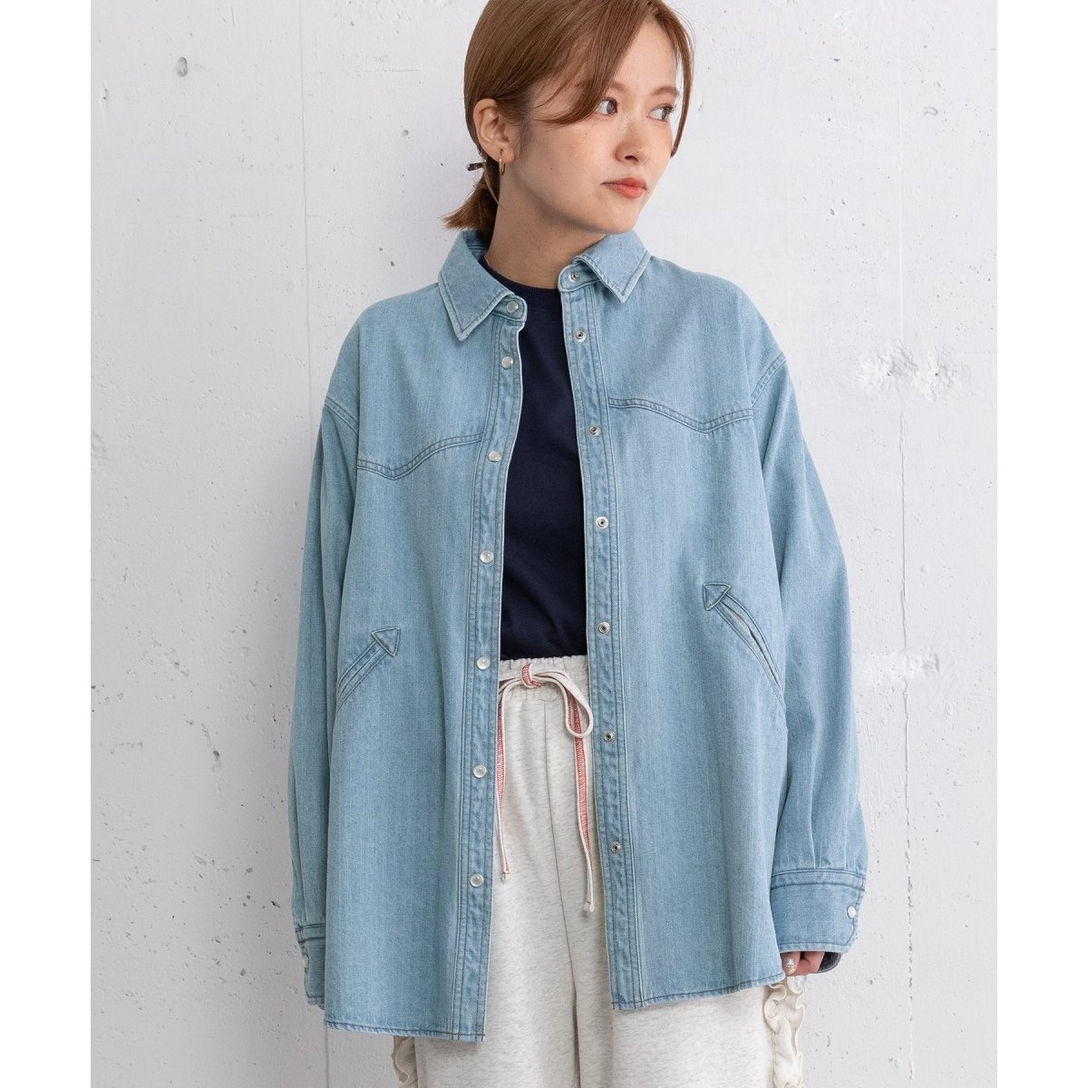 ダークブルー デニムシャツ ウエスタンスタイル