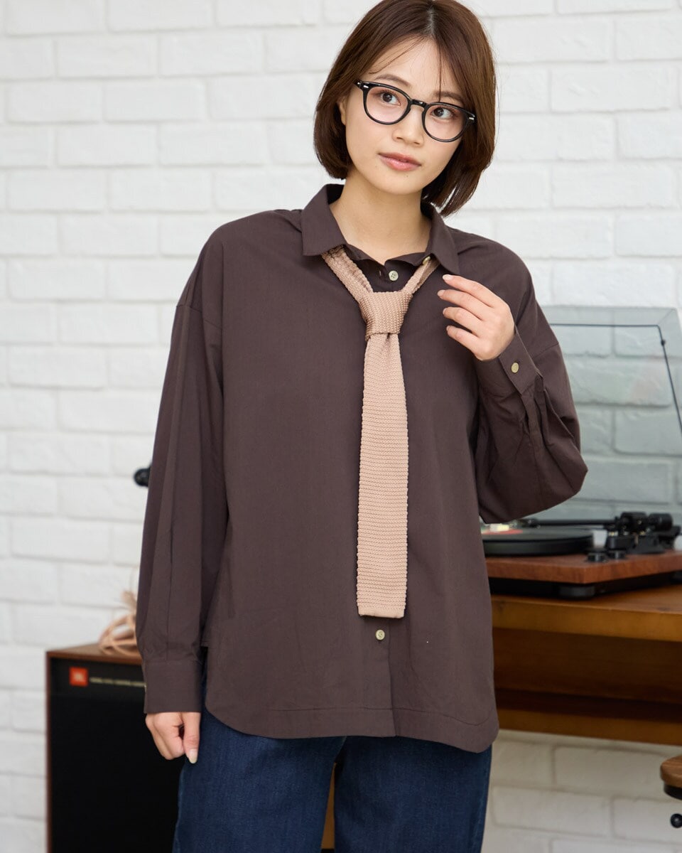 長袖シャツ/--/レーヨン/NVY/無地/リネン混