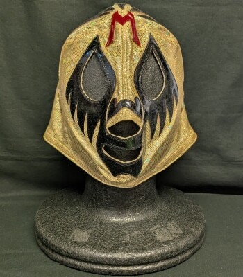 プロレスマスク アロンカナレス製【ドス・カラス(金ラメ×金・赤ラメフチ)】タグなし サイン入り