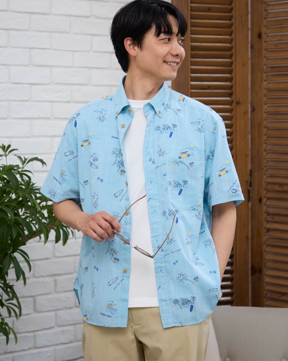 リーフプリントバンドカラーシャツ(大きいサイズ)