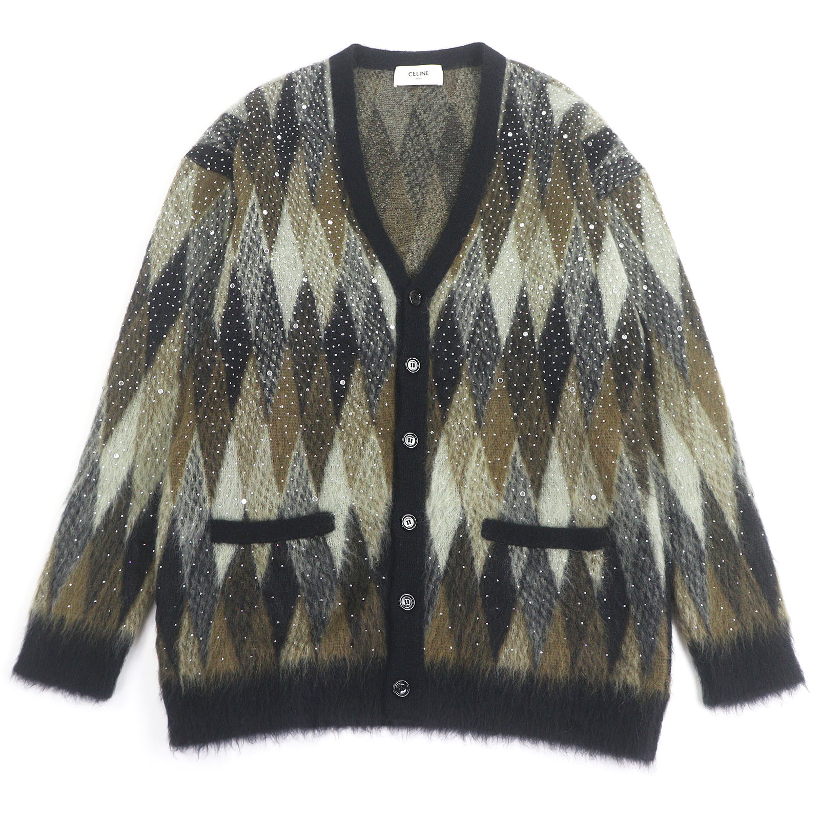 極美品★CELINE セリーヌ フィービー期 ベロア 総柄 クロンビーコート アウター ネイビー 34 ハンガー付き イタリア製 正規品 レディース【中古】