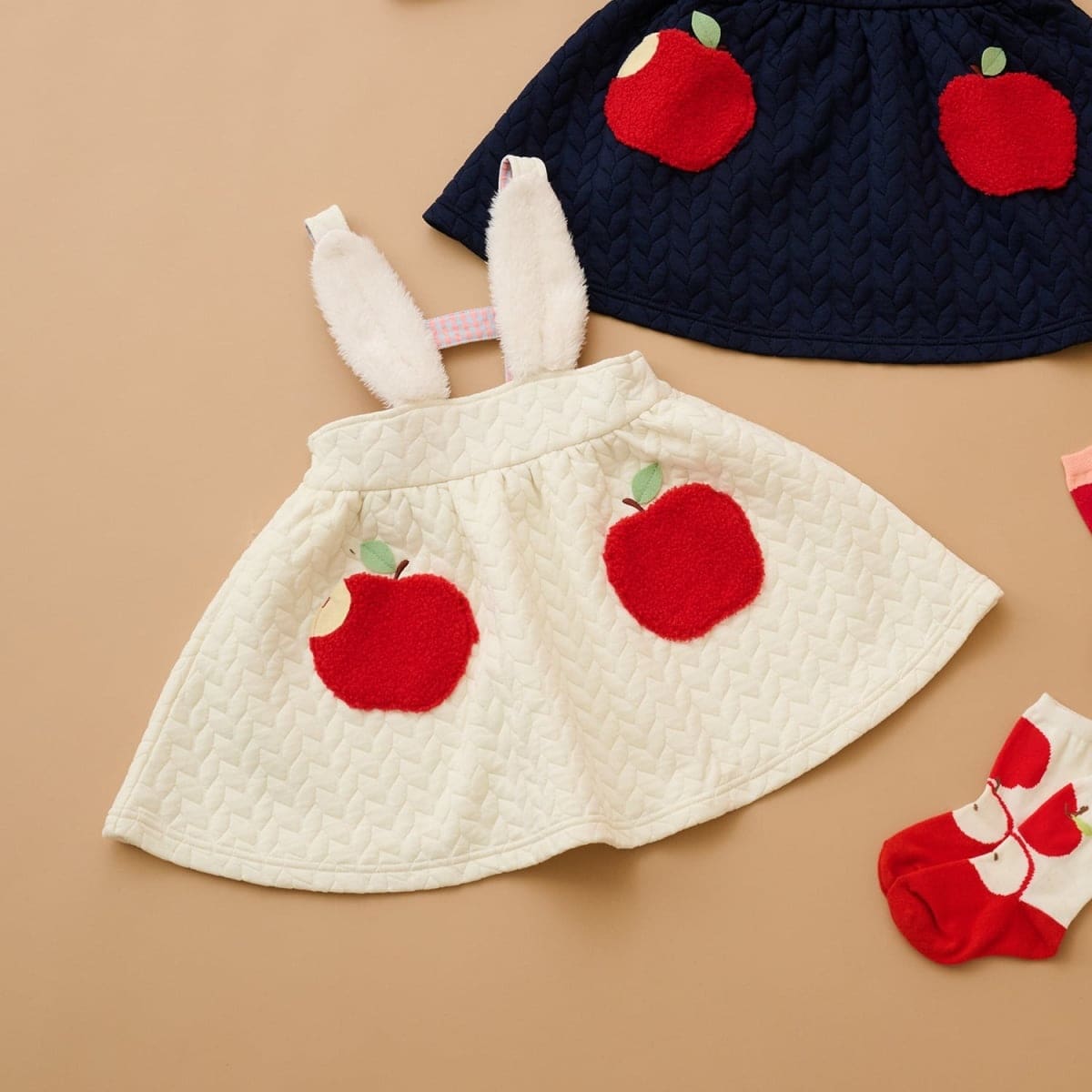 肩ひもにうさぎの耳がついているジャンパースカートです。