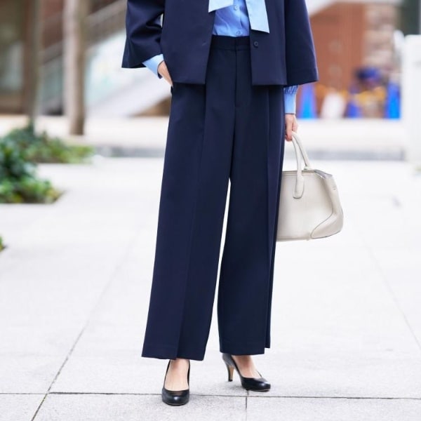 ワンタック仕様でストンと落ちるシルエットが魅力のワイドパンツは、シンプルながらも洗練された印象を与えます。