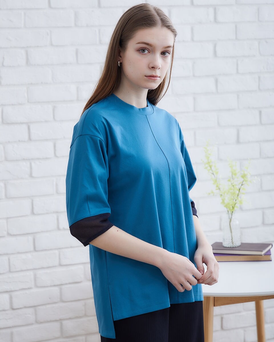 メッシュ切替カットソー/XXS/ポリエステル/BLK