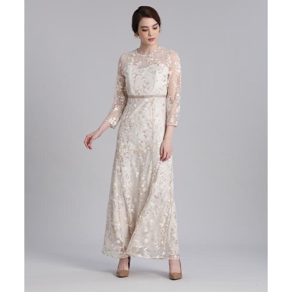 美品 送料込み Maglie par ef-de マーリエパー エフデ ベージュ レース 刺繍 ウール ワンピース ( 日本製 毛100% ウールジョーゼット 花柄