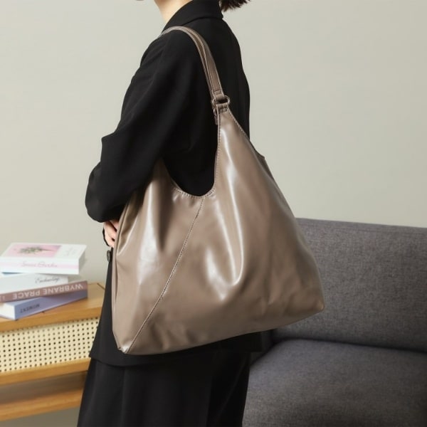 【軽量】【A4収納◎】合皮Vカットトートバッグ