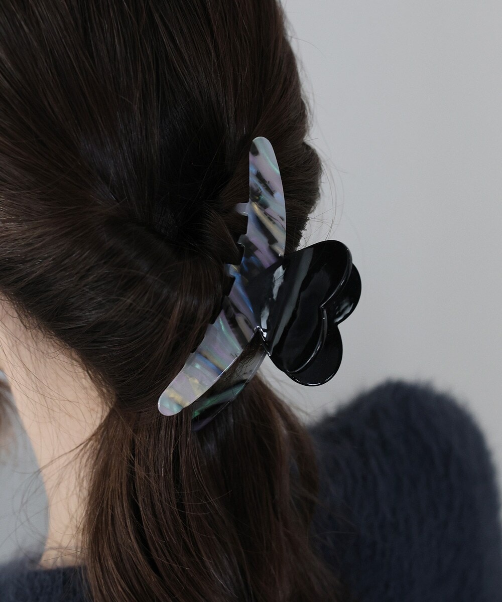 上品なマーブル柄が目を惹く、ハートデザインのバンスクリップ。