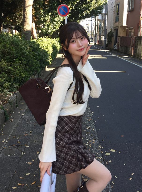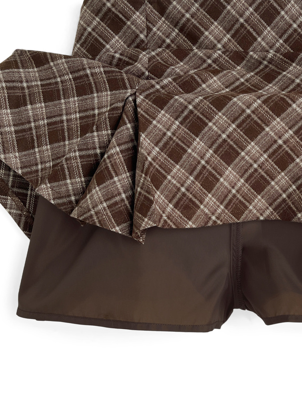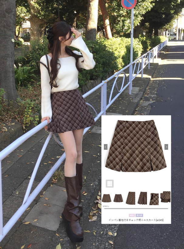 インパン裏地付きチェック柄プリーツミニスカート[ai63]