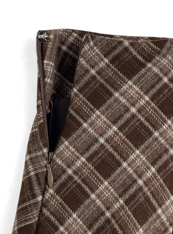 チェック柄バックレースアップマーメイドスカート[pa093]