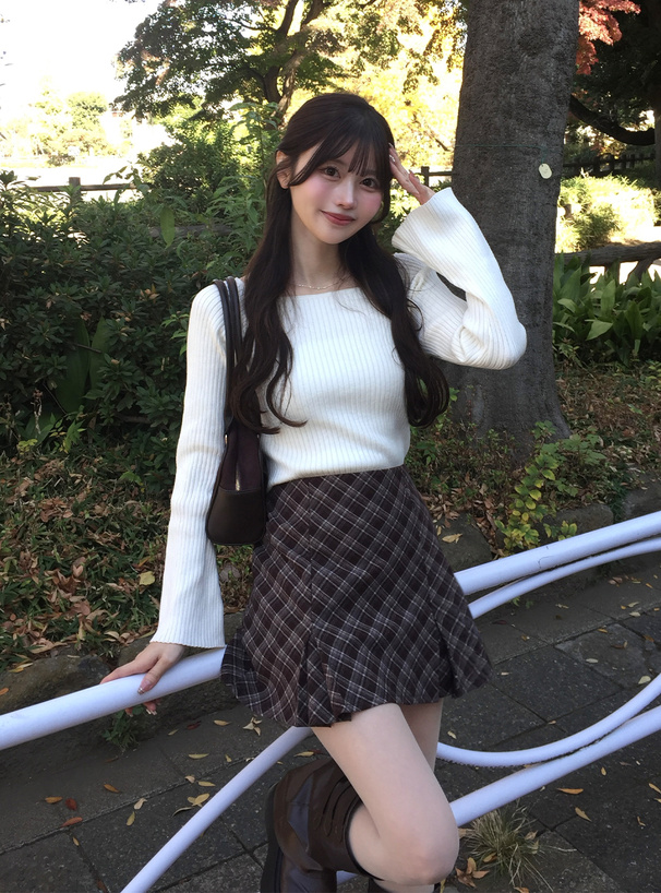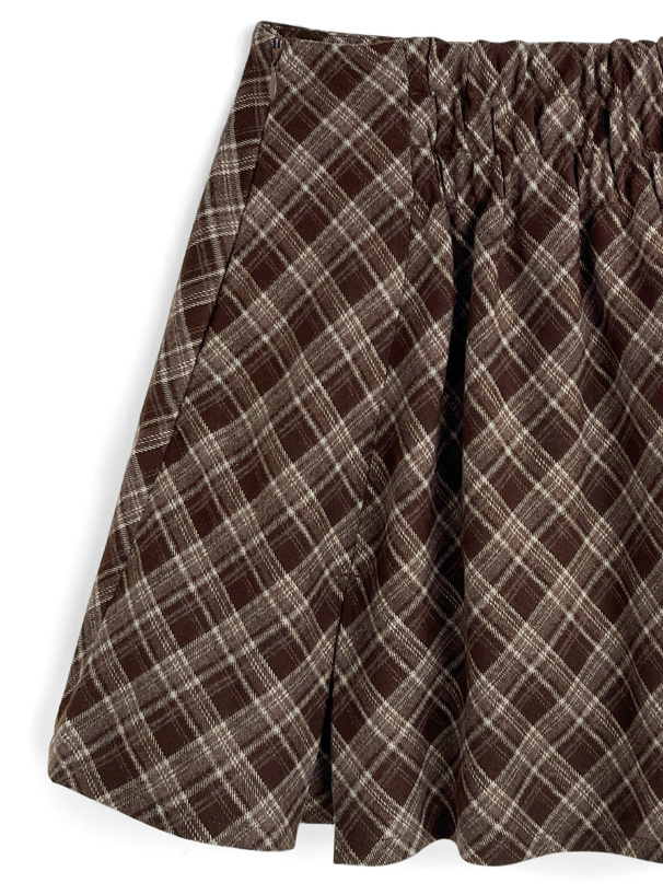 インパン裏地付きチェック柄フレアミニスカート[ai258]