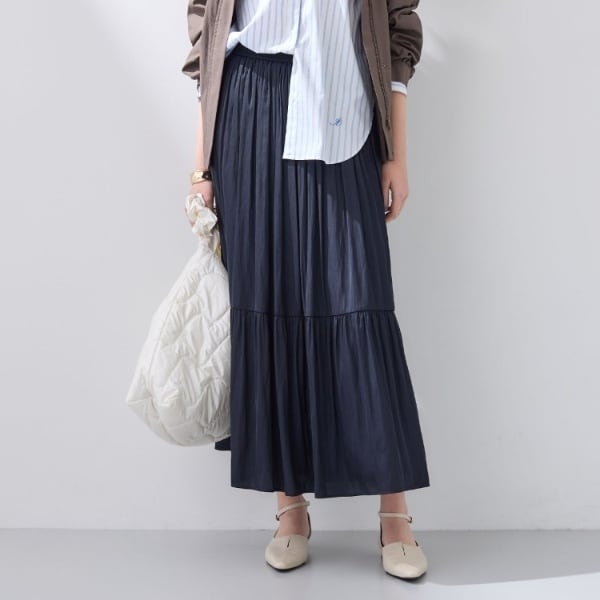 ◯ヒューマンウーマン【洗える】みもれ丈 さらさら ギャザー らくちん スカート