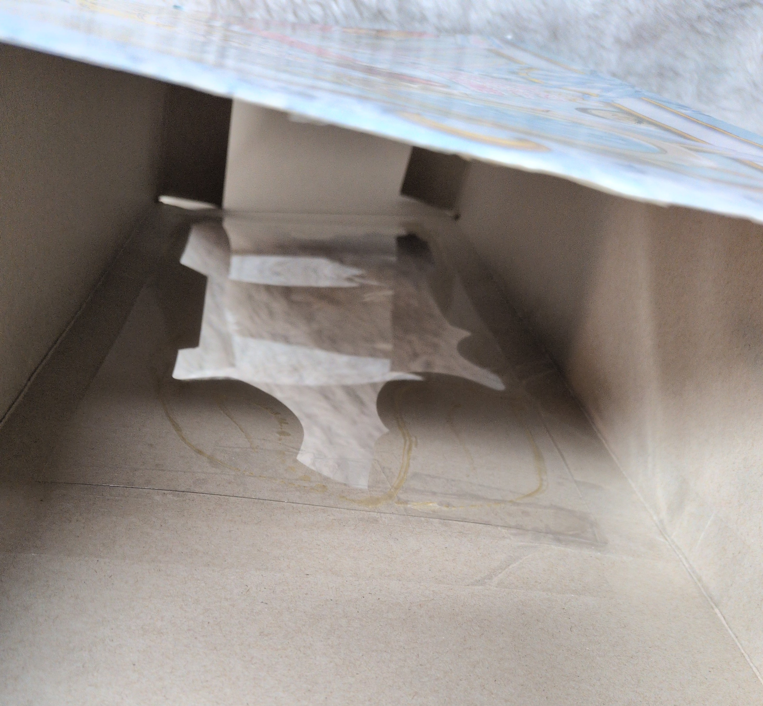 メーカーによる検品のため開封され再びテープ留めされたもの。中は未使用