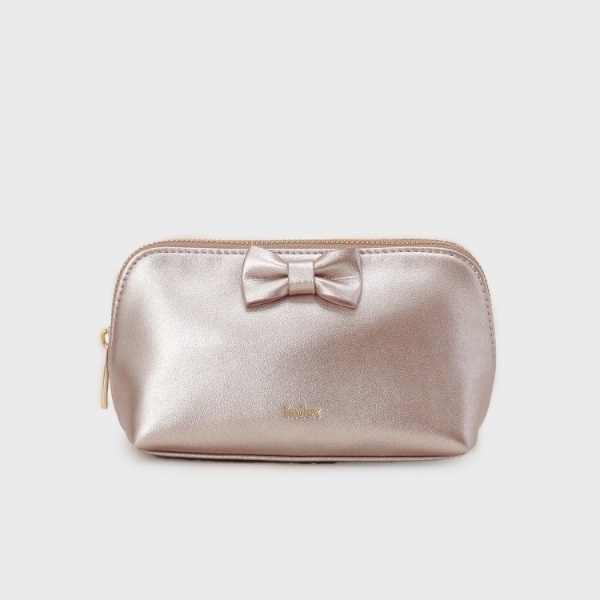 ラメ感のある合皮素材とリボンモチーフがキュートなポーチ