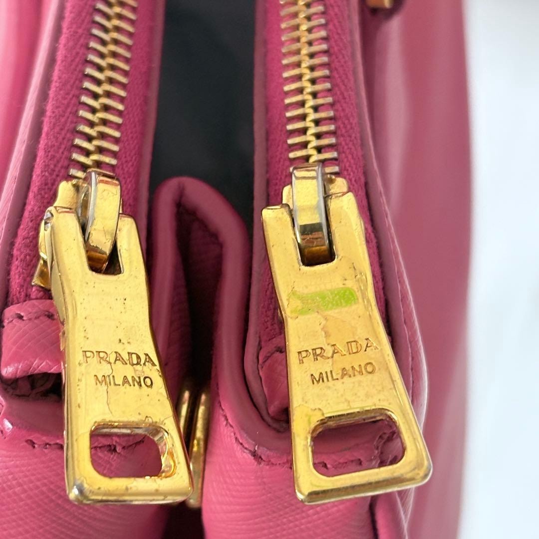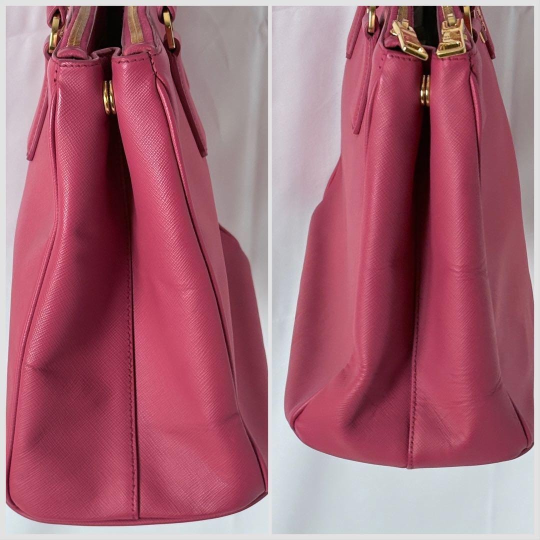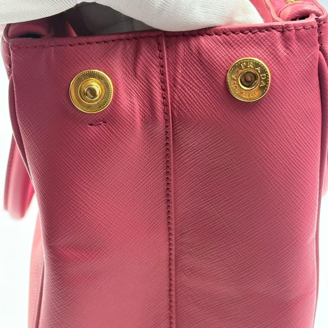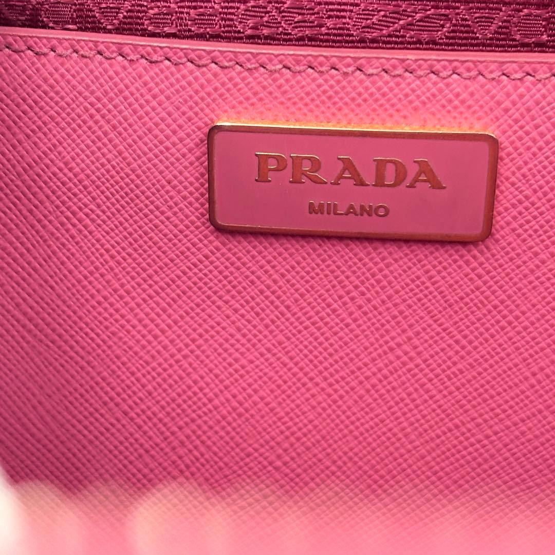 洗練されたフォルムと鮮やかなピンクが印象的なPRADAのサフィアーノバッグ。