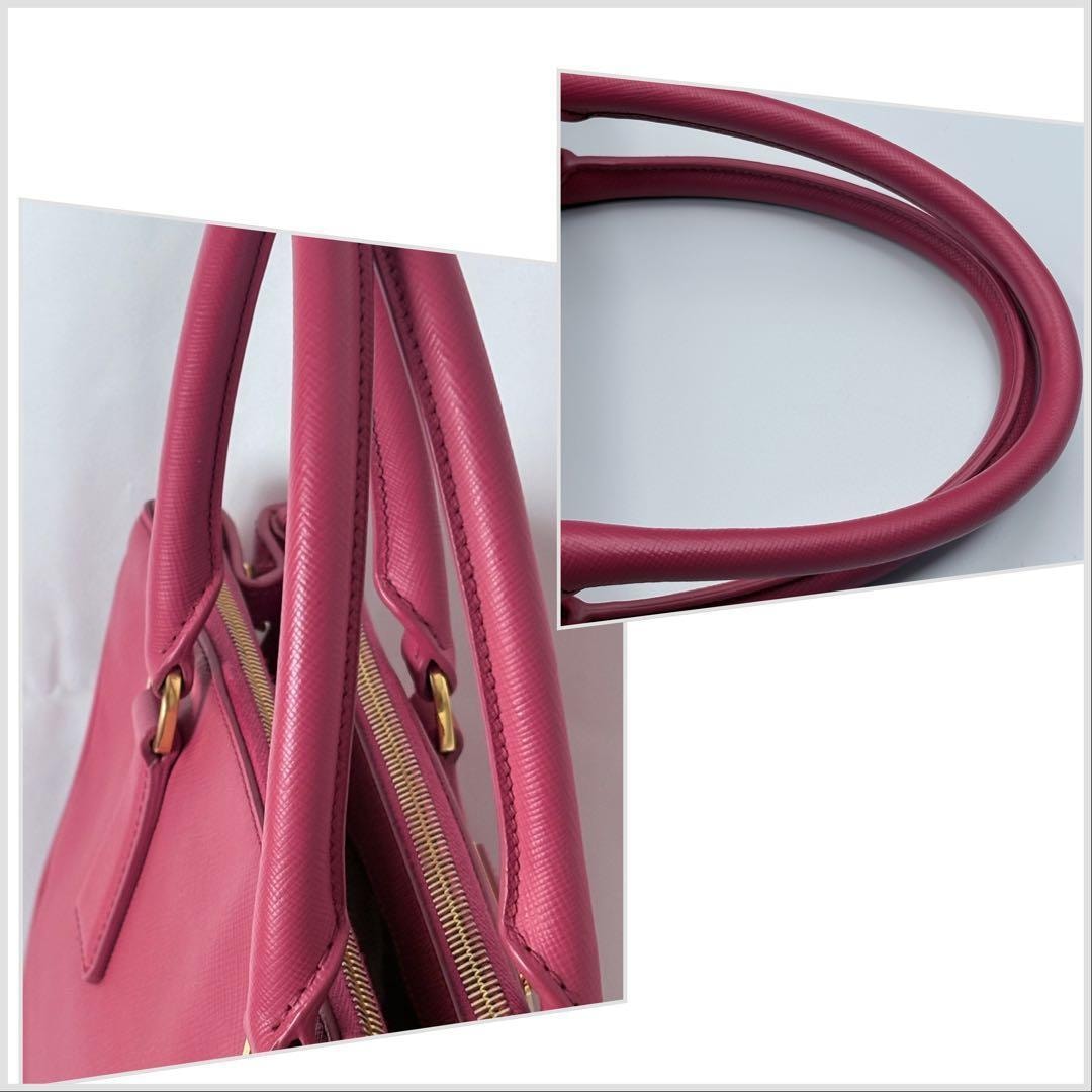PRADA プラダ サフィアーノレザー ハンドバッグ ピンク 三角ロゴ ゴールド金具