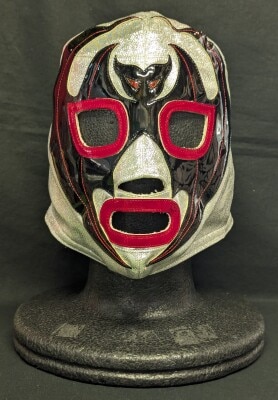 プロレスマスク アンヘルアステカ製【ミル・マスカラス(黒特殊生地×銀ホロ・赤フチ)】 タグなし
