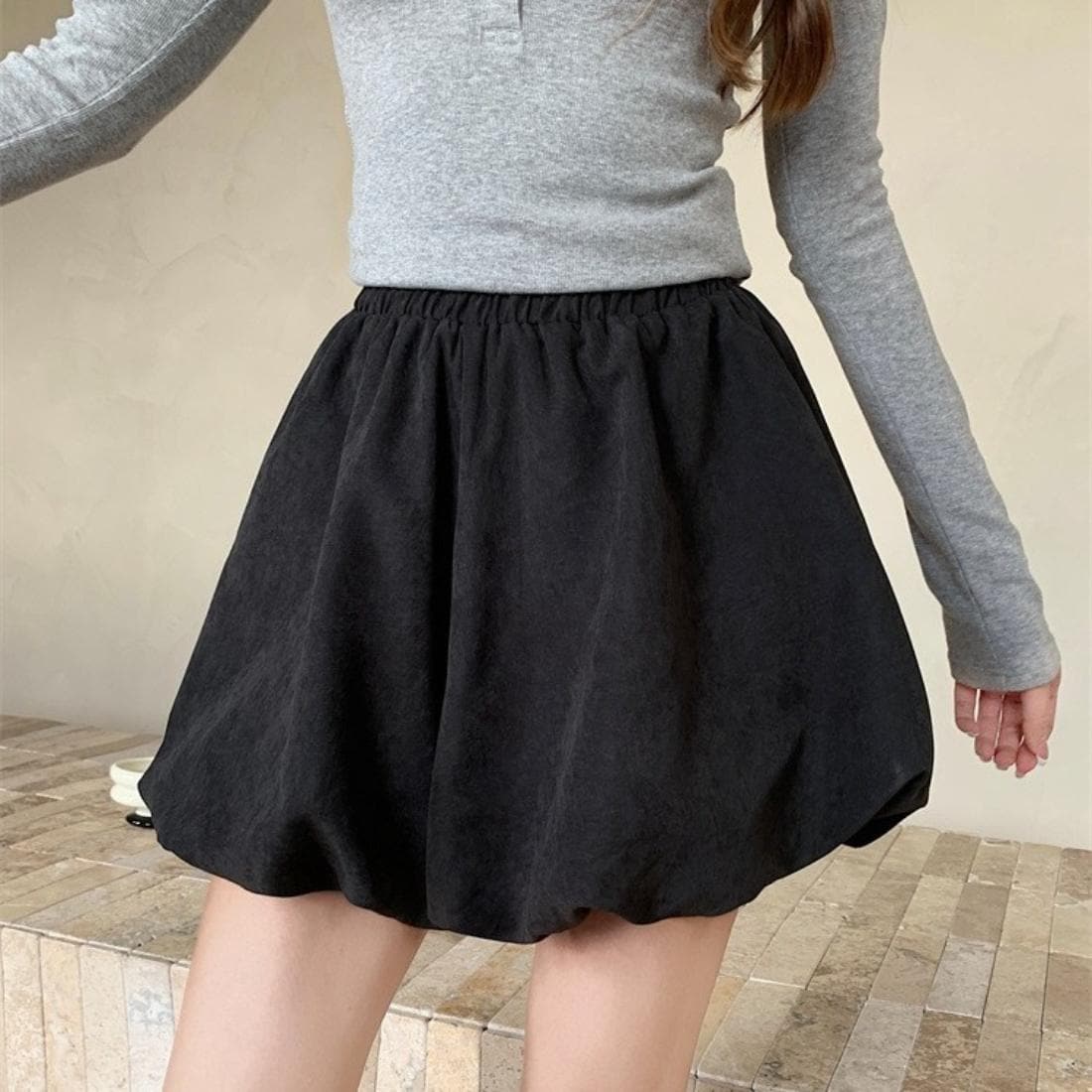 ミニスカート バルーンスカート グレー