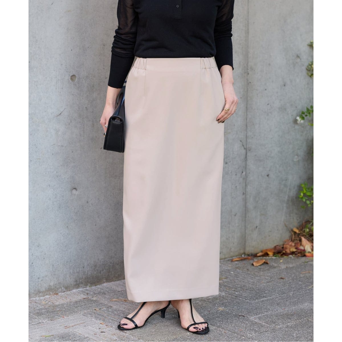 シンプルなデザインのストレートスカート。