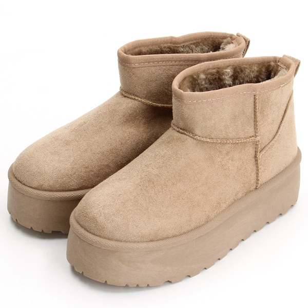 ふわふわのボアで足元からぬくもりを感じる厚底ショートブーツ。